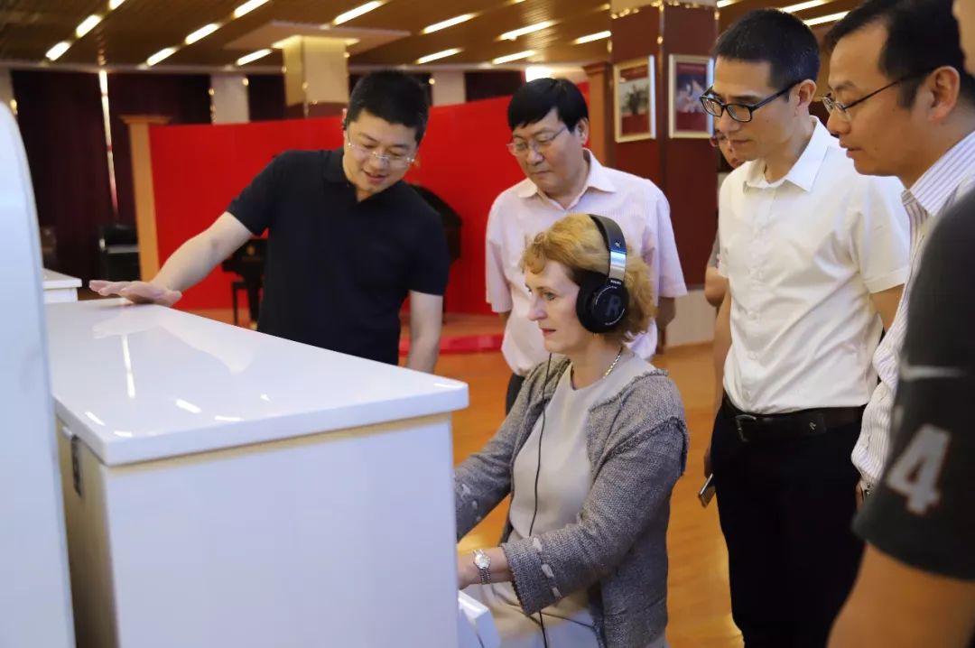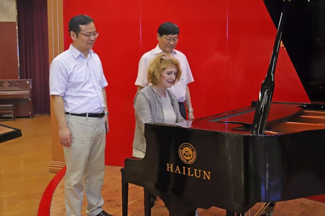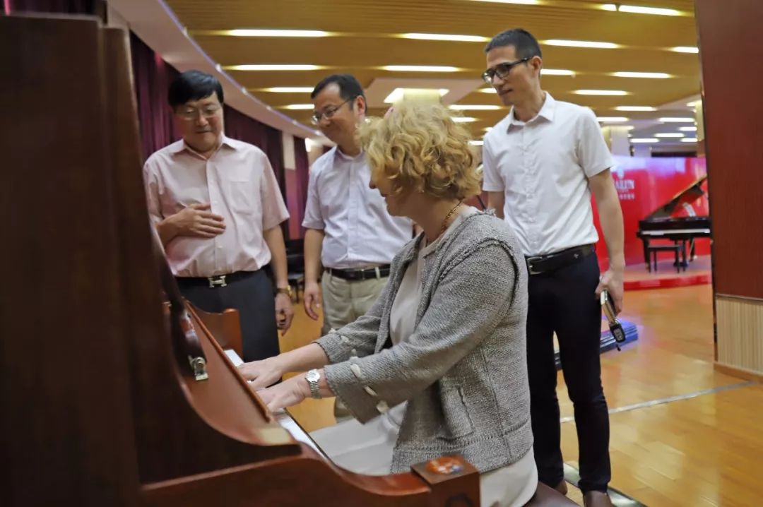 7月7日上午,奧地利維也納音樂表演藝術(shù)大學(xué)校長烏里克·祖茜(Ulrike Sych)及前任副校長威德霍姆(Widholm)到訪海倫鋼琴。