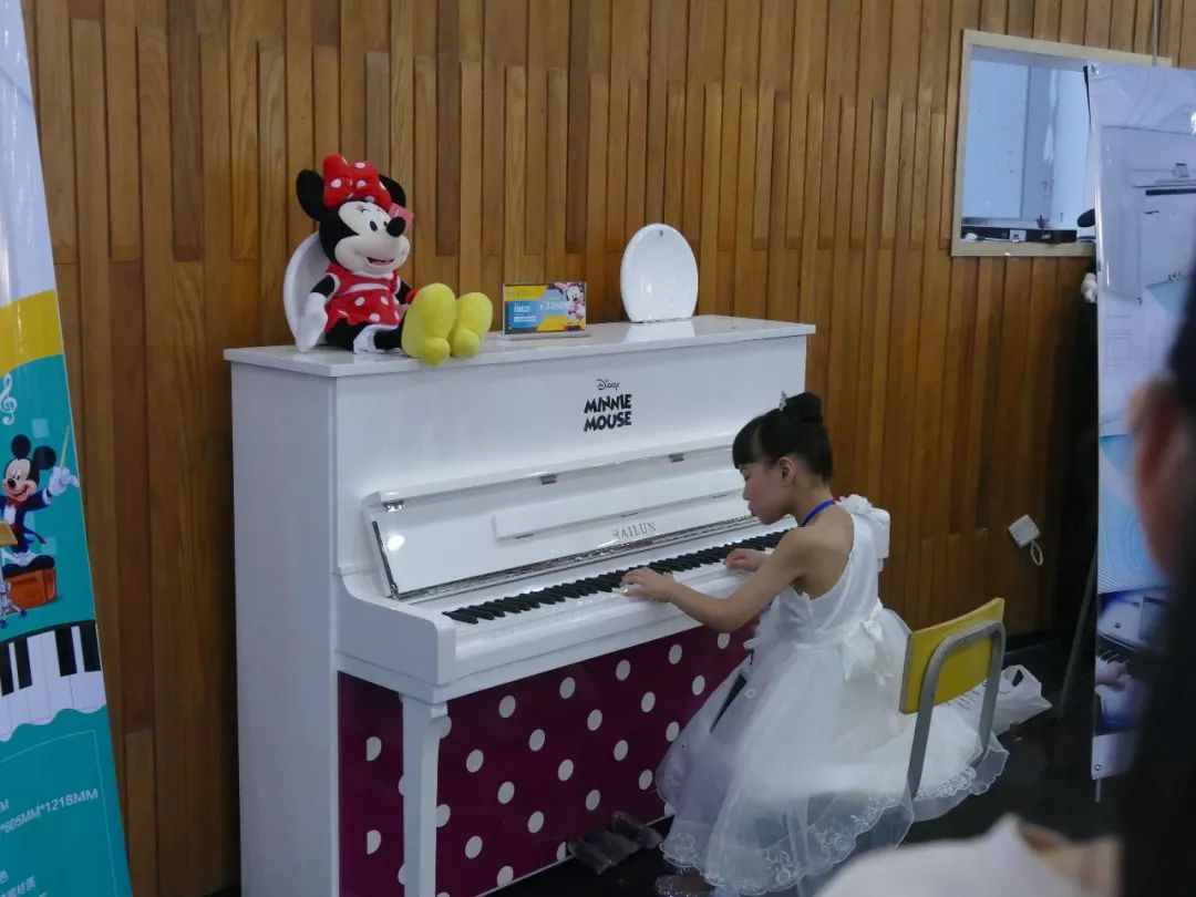 筆者在大廳發(fā)現(xiàn)這么一個(gè)有趣的現(xiàn)象:海倫迪士尼系列的DH2F鋼琴前拍了很長(zhǎng)的對(duì),而另一架鋼琴前隊(duì)伍卻很短。筆者問(wèn)那些排隊(duì)的孩子們:“為什么你們排了這么長(zhǎng)的隊(duì)呢?”孩子們異口同聲答道:“這臺(tái)鋼琴很可愛(ài),我們都很喜歡,所以就想排隊(duì)來(lái)彈啦。”由此可見(jiàn),海倫迪士尼鋼琴確實(shí)是一款深受小朋友們喜歡的鋼琴產(chǎn)品。