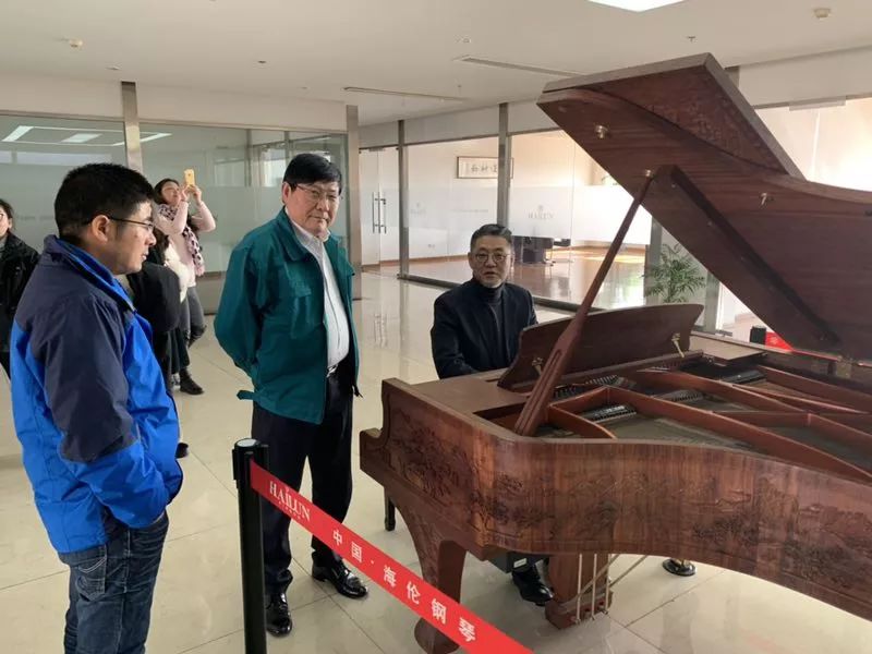 楊天君教授還在陳海倫董事長的陪同下試奏了當(dāng)年頗受業(yè)界關(guān)注和好評的海倫紅木大型音樂會三角鋼琴。他對海倫鋼琴出眾的音色和觸鍵反應(yīng)贊不絕口,并對海倫鋼琴作為國內(nèi)上市樂器制造企業(yè)的佼佼者而取得的成績表示祝賀。