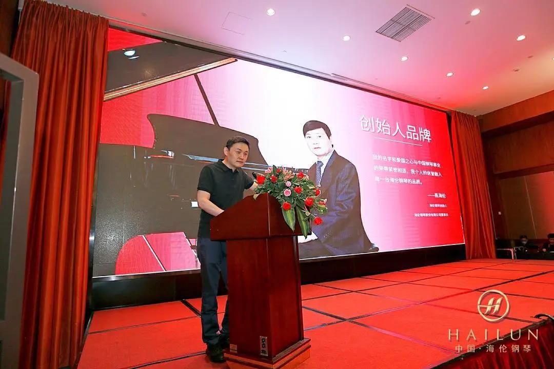 海倫鋼琴董事兼副總經(jīng)理陳斌卓作為本次會議的主講人,上臺致辭并就《營銷工具的變革》發(fā)表指導講話。