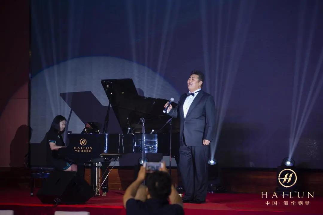蔡領老師的琴音與女歌手的婉轉(zhuǎn)之音,給大家?guī)砹瞬灰粯拥摹段覑勰阒袊罚趾氩懙膲验熀由皆诟杪暸c琴音中徐徐展現(xiàn)在眾人面前,將晚宴的氣氛推向高潮。