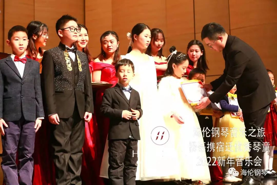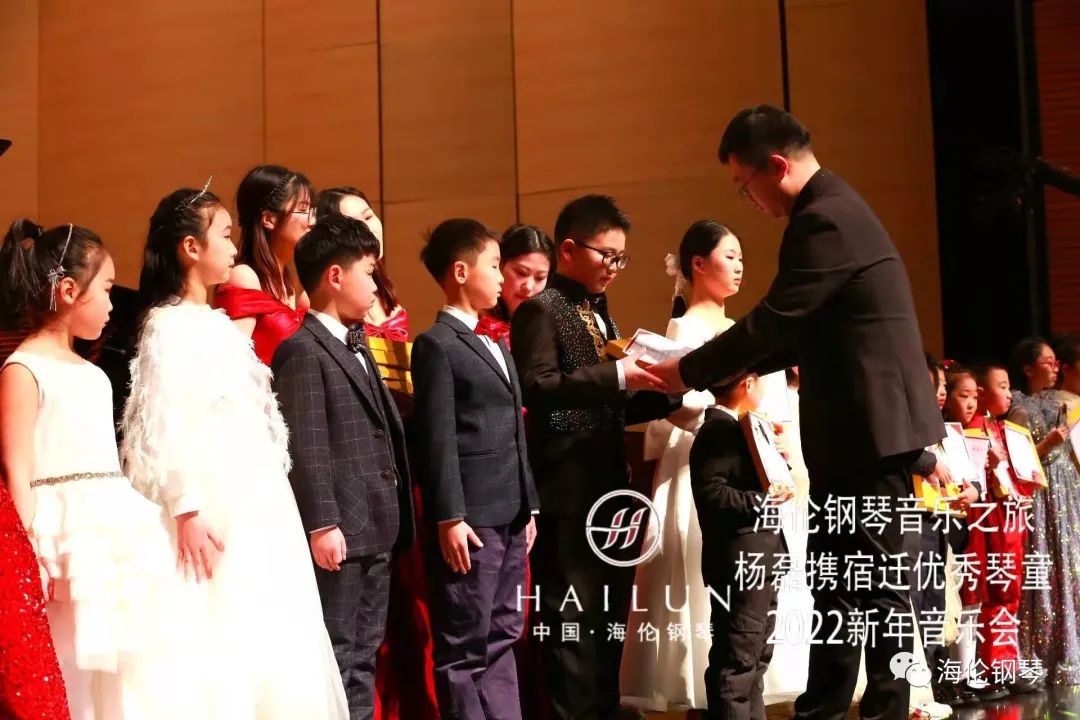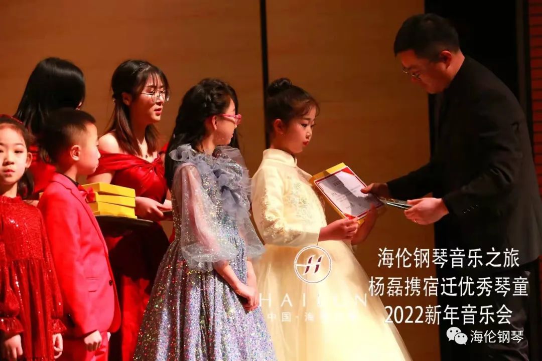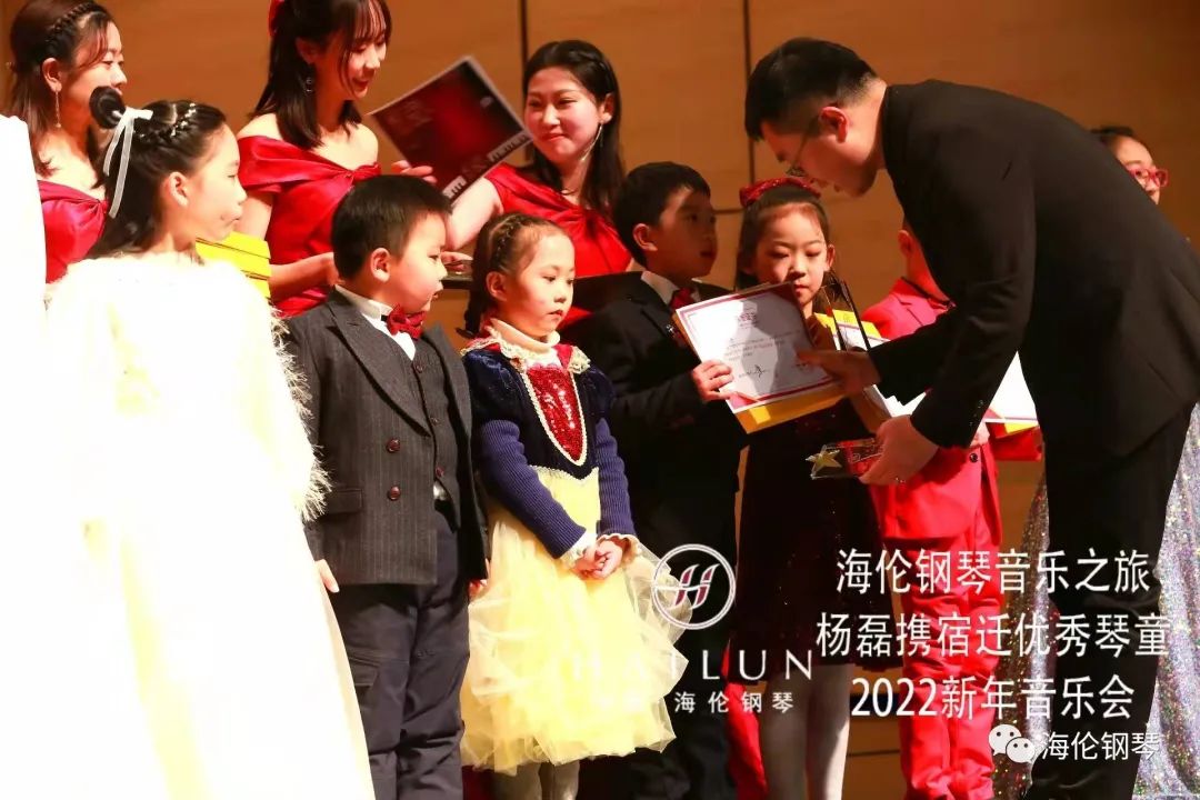 本次音樂會的成功舉辦得到了家長們的大力支持,通過前期網(wǎng)絡投票,選出了20位“最受喜愛琴童”。鋼琴家楊磊為獲獎琴童頒發(fā)簽名榮譽證書、獎杯及海倫鋼琴提供的學習套裝獎品。