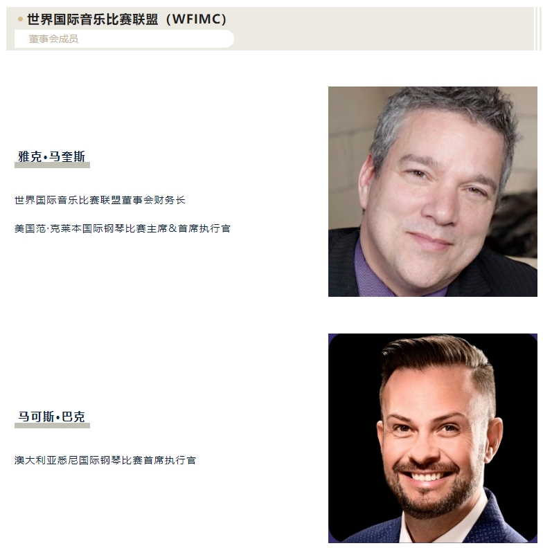 世界國際音樂比賽聯盟(簡稱:WFIMC)成立于1957年??偛吭O在瑞士日內瓦,是聯合國教科文組織國際音樂理事會的成員。目前由包括日內瓦國際音樂比賽、伊麗莎白女王音樂比賽、肖邦國際鋼琴比賽、范·克萊本國際鋼琴比賽、慕尼黑ARD國際音樂比賽等在內的100多個國際知名音樂比賽和機構組成。