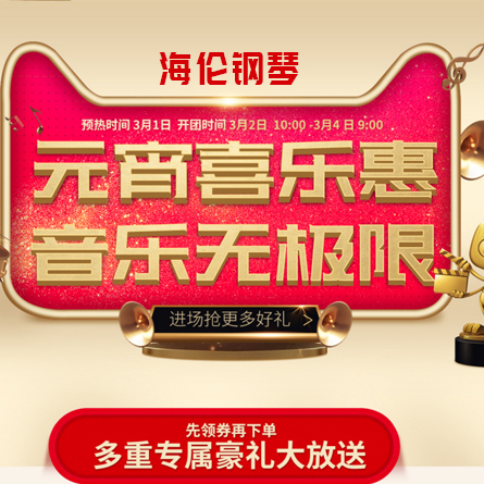 活動時間2018-03-02-2018-03-04 活動平臺 海倫樂器旗艦店(天貓) 活動狀態已結束